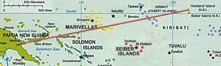 1. This document is a map showing what Amelia Earhart's flight path would have been if she had flow directly from Lae, Papua New Guinea to Howland Island.